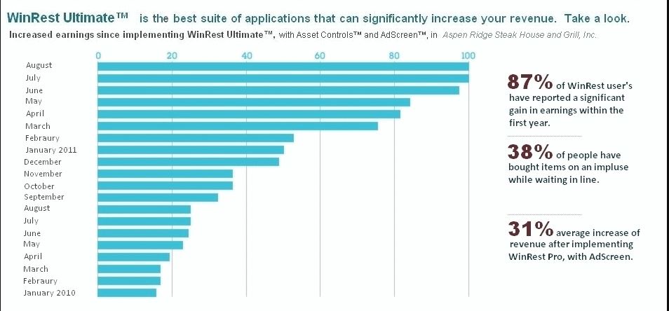 Impulse purchases represent almost 40% of all purchases made according to test by Harvard University. WinRest™ along with AdScreen™ helps increase these impulse purchases by displaying eye-catching advertising campaigns.